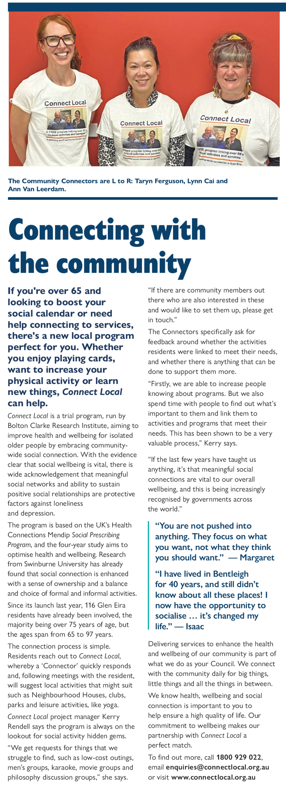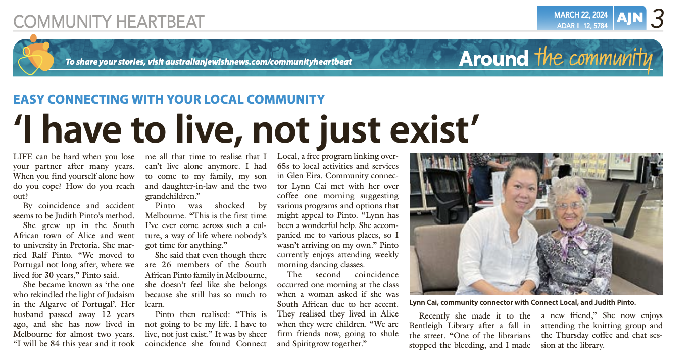 The Connect Local Team were out and about again for Loneliness Awareness Week 2025, continuing their mission to promote social connection across Glen Eira. This year, we hit the streets of Elsternwick, engaging with businesses along Glen Huntly Road.