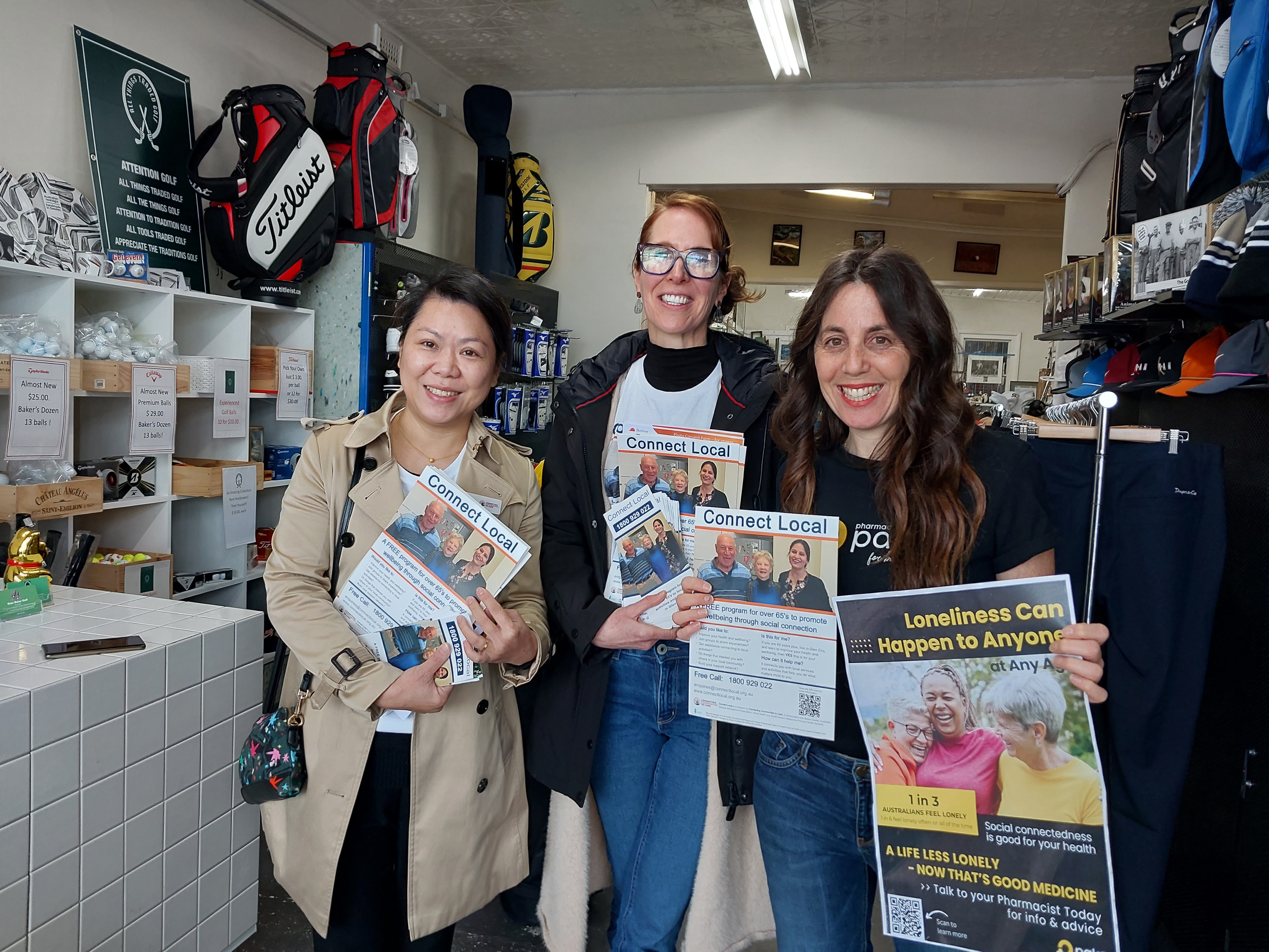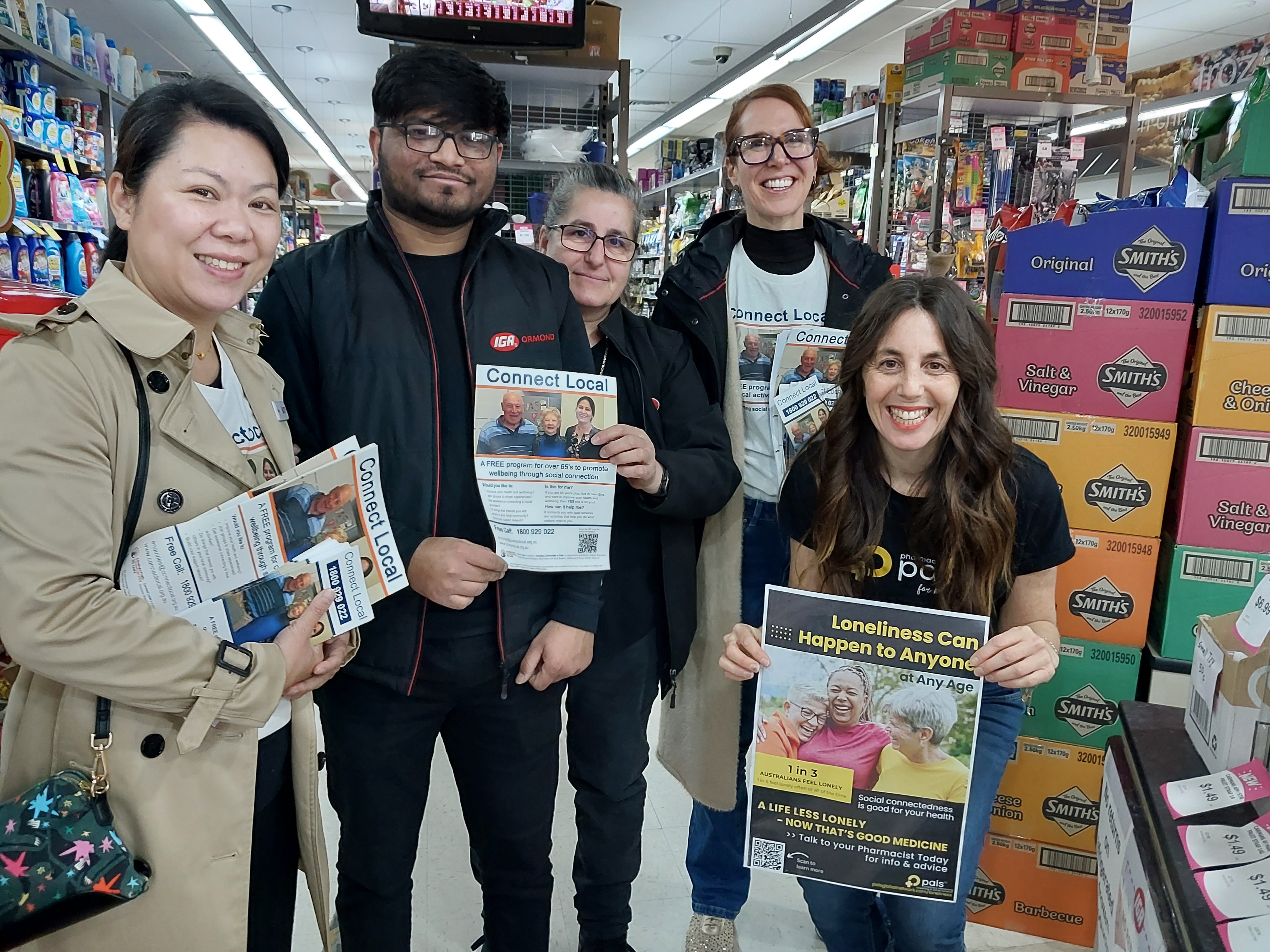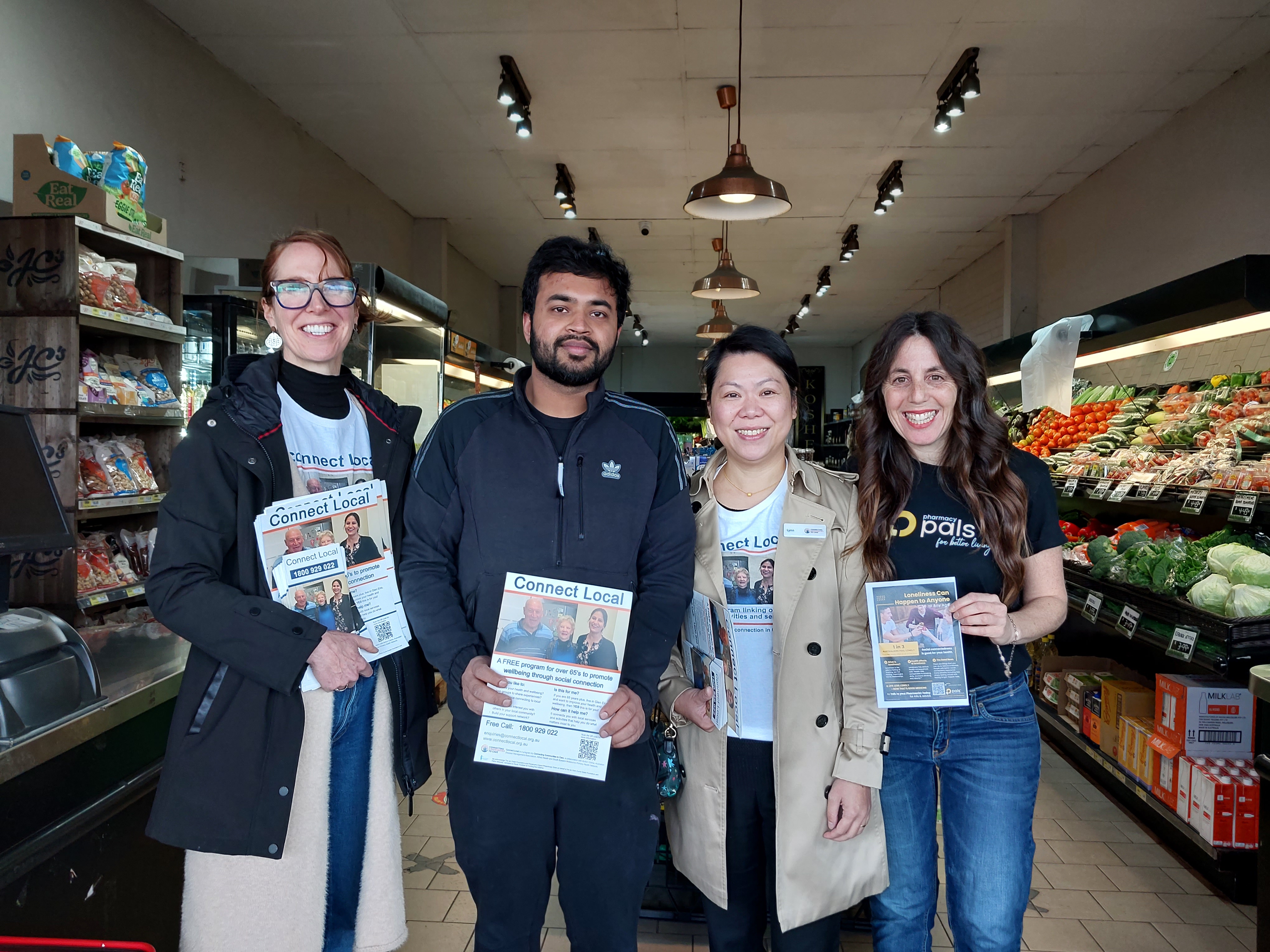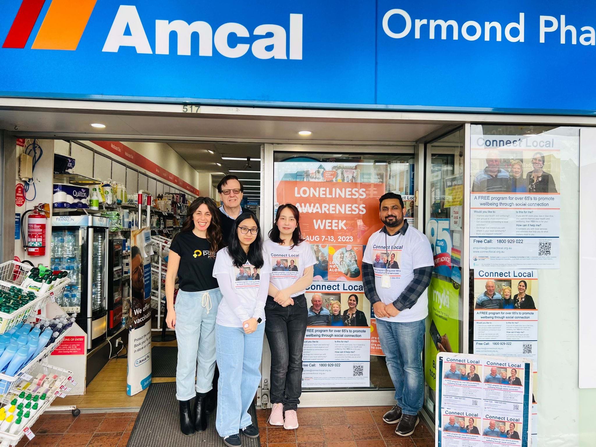 The Connect Local Team were out and about again for Loneliness Awareness Week 2024. Based at the Amcal Pharmacy in North Road Ormond, the Team along with the lovely Jenny Kirschner from Pharmacy Addressing Loneliness and Social-isolation (PALS) set about spreading awareness of the benefits of Social Connection and the Connect Local program with local businesses and residents.