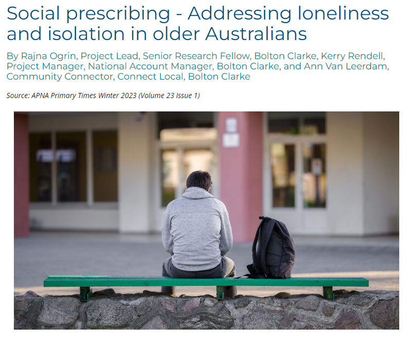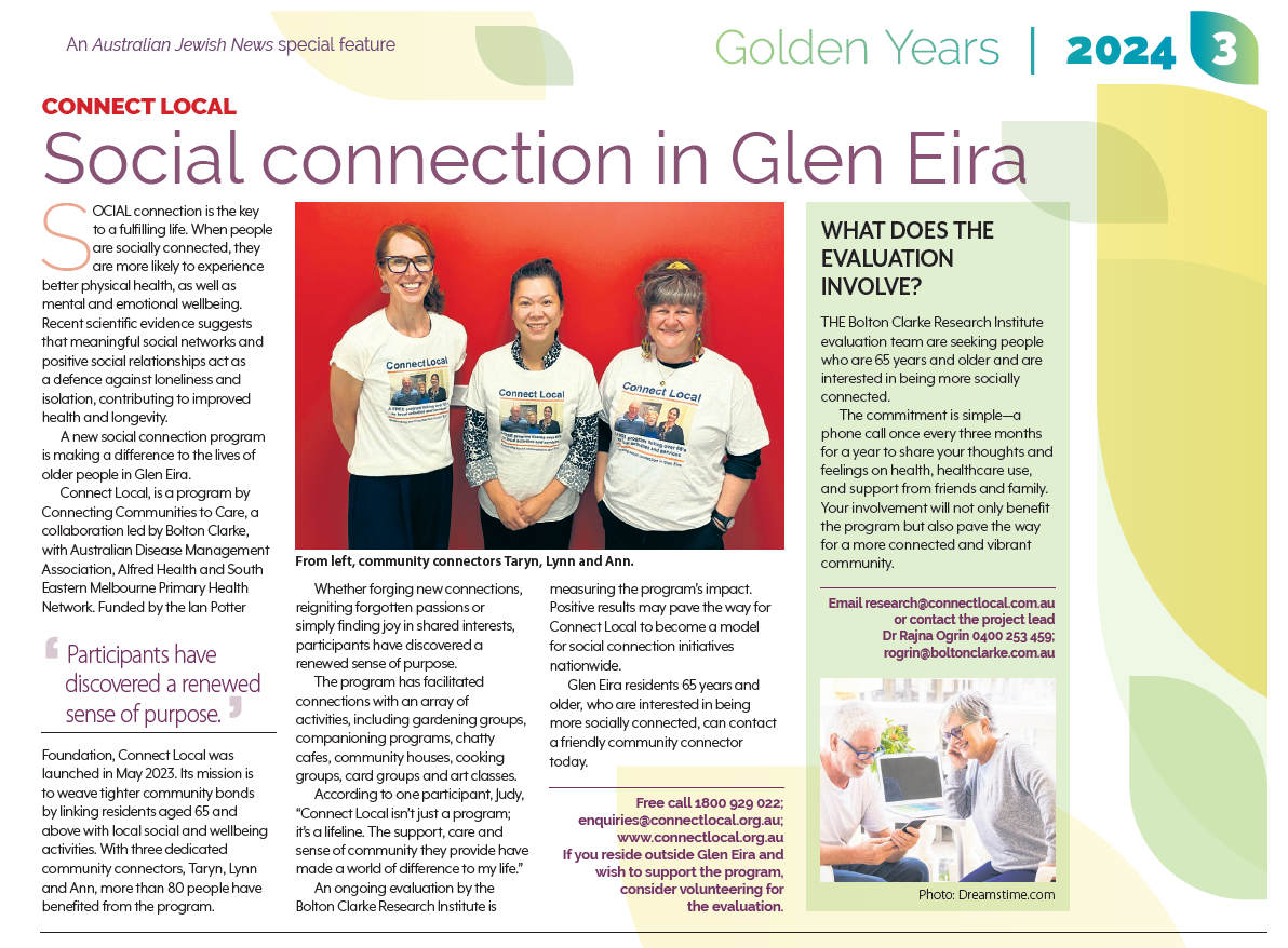 Dr Rajna Ogrin, Senior Research Fellow at Bolton Clarke Research Institute, and project lead of a social connection program in metropolitan Melbourne, Connect Local www.connectlocal.org.a