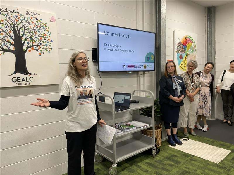 Connect Local was officially launched on May 4, 2023, in a joyous ceremony held at the Caulfield Cup Room of the Glen Eira Town Hall. More than 60 community members, program participants, health and social service providers, council staff, and special guests including Dr. Michelle Ananda Rajah MP (Federal Member for Higgins), Mayor of Glen Eira Mr. Jim Magee, Dr. Daniel Fineberg, Dr. Harry Gibbs from Alfred Health, and Ms. Deidre McGill from Bolton Clarke, gathered to mark the occasion. At the event, attendees were able to watch an inspiring video that showcased participants Loraine and John, as well as social service providers Tracey and Avril.